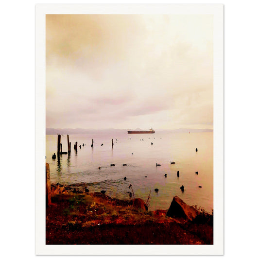 A Ship in Tranquil Blue Waters Photography Wall Art Print (Wooden Framed)