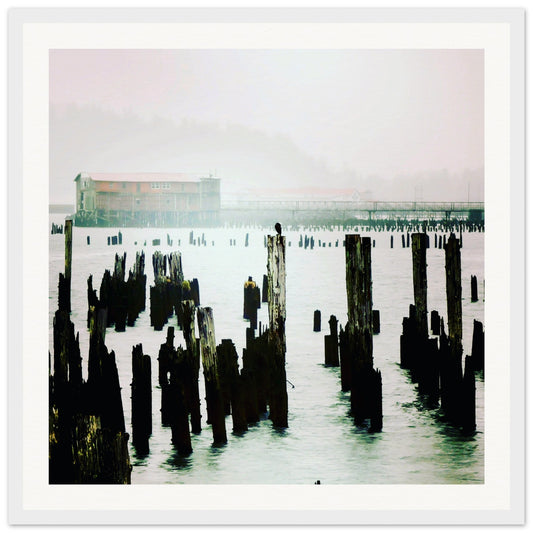 Cormorant on an Old Cannery Pier Photography Wall Art Print (Wooden Framed)