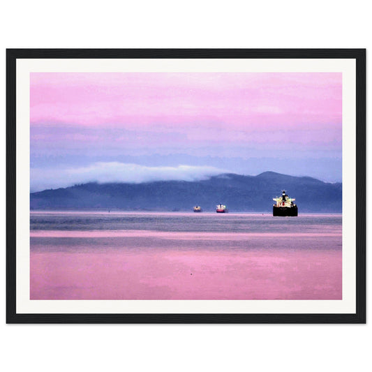 Ships in a Pink Sunset Photography Wall Art Print (Wooden Framed)