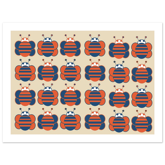 Orange and Navy Buzzing Bees Giclée Wall Art Print