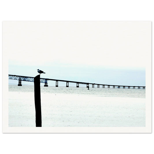 Seagull by the Bridge Minimalist Photography Wall Art Print