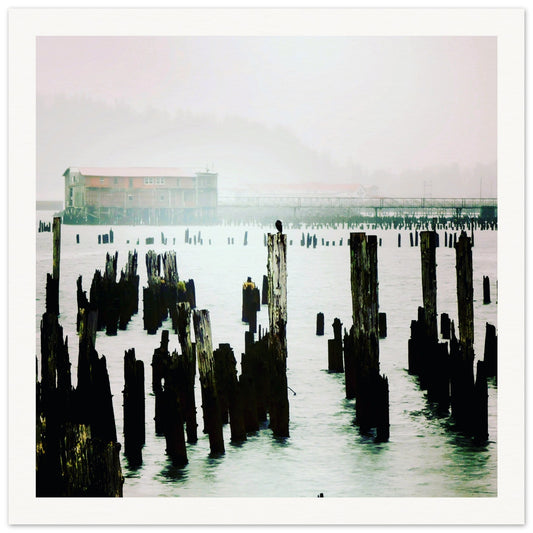 Cormorant on an Old Cannery Pier Minimalist Photography Wall Art Print